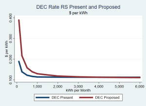he typical DEC RS electric customer faces a 13.68 % increase monthly compared to a very high use residential customer whose bill would actually go down. The pattern is the same for DEC’s RE all-electric rate and for DEP, although the highest DEP users still face an increase, but only 3.1 %.